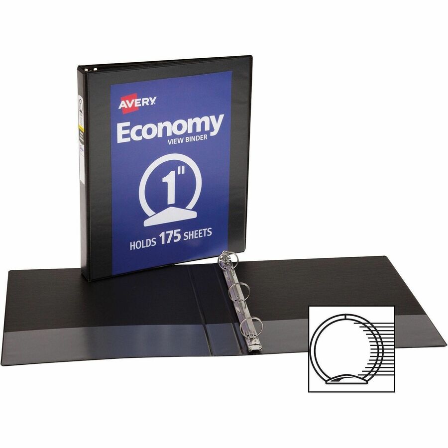 1" Binder Capacity - Letter - 8 1/2" x 11" Sheet Size - 175 Sheet Capacity - 3 Ring(s) - Fastener(s): Round Ring - Pocket(s): 2, Internal - Vinyl, Chipboard - Black - 15.84 oz - Gap-free Ring, Exposed Rivet, Non Locking Mechanism, Clear Overlay - 4 / Bundle