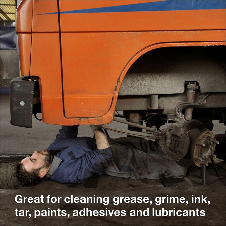- Dual scrubbers quickly remove tough grease, grime, ink, tar and more