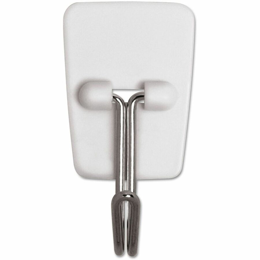 Reusable utensil hooks with Command Adhesive provide a mounting solution that holds firmly and removes cleanly, leaving no surface damage. Rearrange as often as you like. Each hook holds 1/2 lb. Hook has a plastic base and wire hook to hold utensils with eyelets and other small items. |