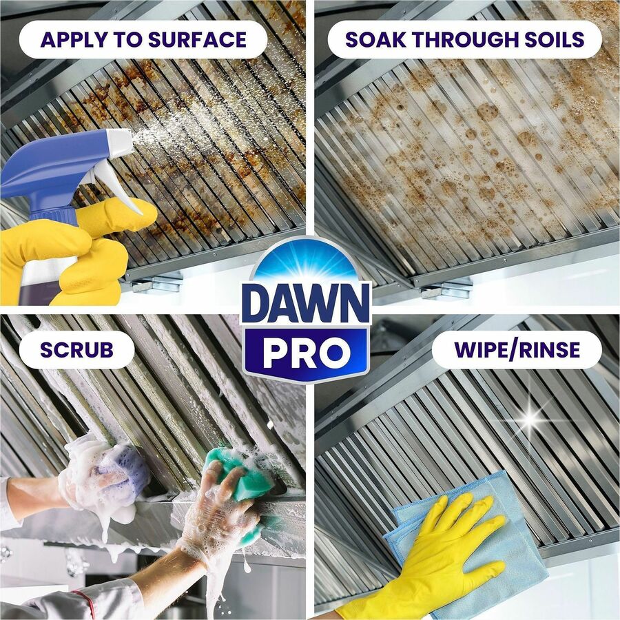 | Marketing Information | Dawn Professional Multi-Surface Heavy Duty Degreaser Spray cleans your toughest grease problems. It can be used full-strength to clean tough, greasy buildup on range hoods, fryers, ovens and walls. Spray is safe for use on food-contact surfaces when followed by rinsing with water. It is excellent for cleaning corral areas and dumpsters. Use for cleaning heavy crank case oil from concrete drive-thru pads and sidewalks. Also clean waxed tile floors without damaging the wax when properly diluted and spot-cleaning where heavy grease buildups exist. Formulated for employee safety, degreaser spray contains no phosphate and is noncaustic and nonflammable. |