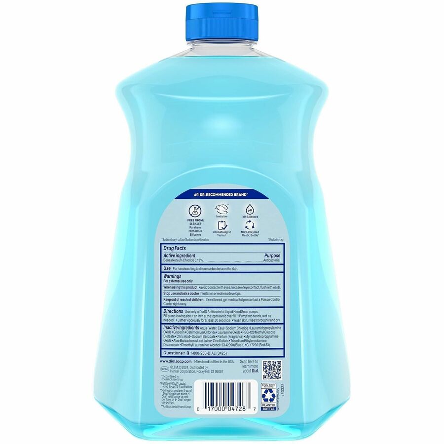 Spring Water Scent - 1.63 quart - Pump Dispenser - Bacteria Remover - Hand, Skin - Antibacterial - Blue - Recycled - Cruelty-free, Paraben-free, Phthalate-free, Silicone-free, pH Balanced, Sulfate-free - 1 Each