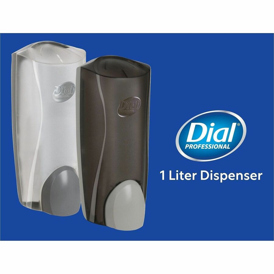 | Marketing Information | Liter Dispenser offers an adjustable dose rate (0.76 ml., 1.2 ml., 1.54 ml.) that allows you to better control soap usage. Adjustable ring allows easy control of dosage. Soap reservoir eliminates soap waste and provides continuous service to customers. Translucent cover allows continuous soap viewing. The cover is as strong as a car tailgate. Locking mechanism helps prevent vandalism. Large push button is intuitive for easy use and ADA-compliant. Dispenser uses 1 liter liquid refills that are induction-sealed for added safety. The seal is auto-punctured when installed in the dispenser to eliminate mess. |