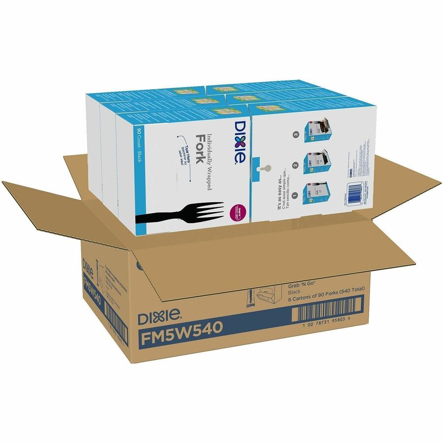 Dixie Grab'N Go Forks, Black, 90 Per Box, Pack Of 6 Boxes