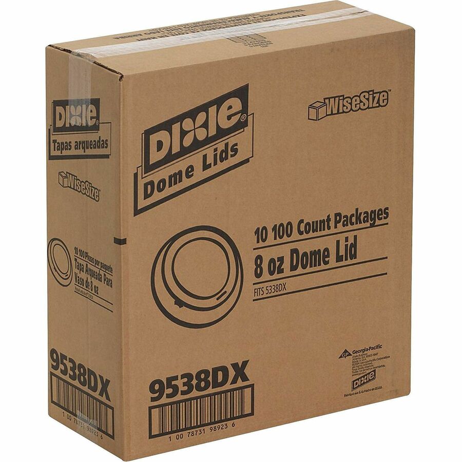 White dome lids are designed for use with 8 oz. Dixie Foods Pathways Hot Cups (2338). Simple-to-use lids feature a hole for straw or sipping from cup. Lids grip the cup from both the inside and outside for an extra-secure fit. Design allows stacking to make it easier to carry two cups at a time. |