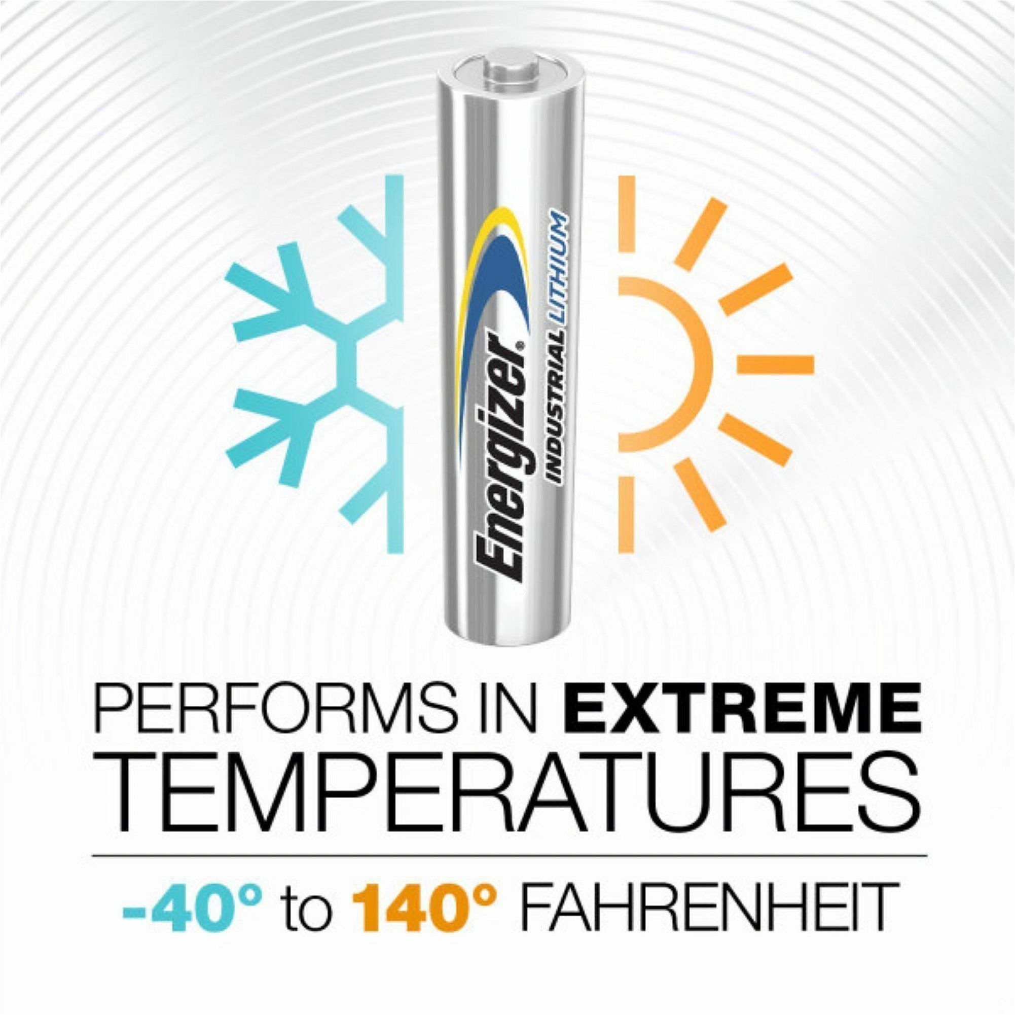 | Marketing Information | Power your industrial and professional devices with Industrial AAA Lithium Batteries whether working in construction, facility maintenance, medical center, business office or classroom. Long-lasting, professional AAA batteries keep your electronics up for the job. In normal use, they're 100 percent leakproof to protect your work-site devices, and they operate in temperatures ranging from negative 40 to 140 degrees Fahrenheit. With this battery's 20-year shelf life, you won't have device downtime. All of that lithium performance comes in a heavy-duty AA battery that weighs 33 percent less than an alkaline AA. When work depends on automatic paper towel dispensers, hard hat lights, pulse oximeters and more, you can rely on the power and protection of Industrial AAA Lithium Batteries. |