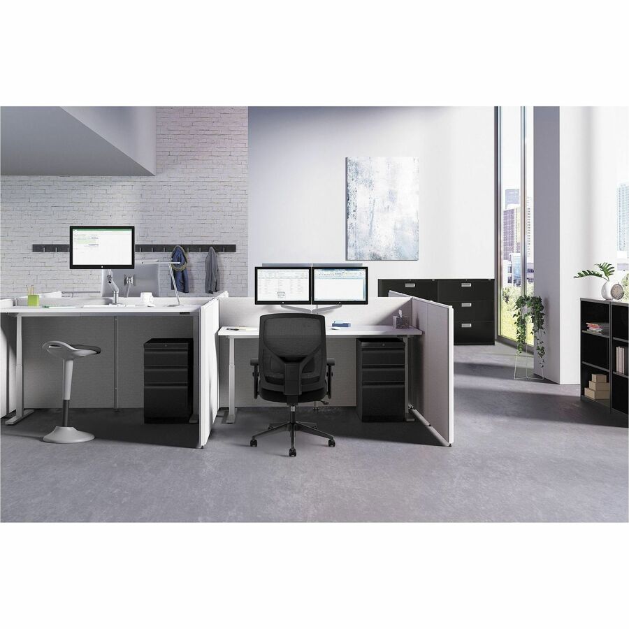 | Marketing Information | 72" high panel with adjustable glides is part of the HON Verse Panel System. Panel systems make the most of available space by accommodating existing furnishings, enhancing productivity and giving your office a professional look. Verse panel features soft, padded fabric with foam padding underneath. Use this 24" wide panel to create privacy, divide a room or wrap around desks. QuickConnect connectors (sold separately) allow easy installation. Simply snap onto connectors at the top and bottom of the panel and slide the panels together. This connecting hardware (sold separately) allows panels to be arranged in straight, multiple-height, 90-degree, three-way and four-way configurations. Panel construction includes a 1" powder-coated steel frame with interior reinforcement; 1/4" foam padding; and 1/8" medium-density fiberboard. |