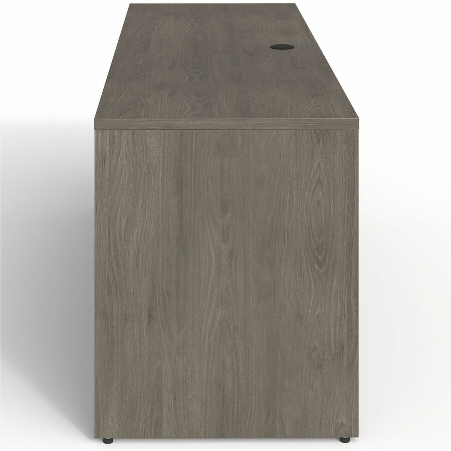 | Marketing Information | Left-pedestal credenza is part of the elegant, Lorell Prominence 2.0 Series that is perfect for your executive office. Pair with single-pedestal desks, returns and bridges to create L-shaped and U-shaped configurations. Durable, Gray Elm laminate surface is mar-resistant, burn-resistant and impact-resistant to withstand daily work life. The 1" thick top with matching 3mm edgebanding is made with 45 lb. density particleboard and finished on both sides with high-performance, thermally fused melamine. Freestanding, 72" wide credenza features a full modesty panel for privacy, single grommet in the top and back for easy cord routing, and one full pedestal with two locking file drawers to secure your important documents in letter-size and legal-size hanging files with included hangrails. File drawers have 100 lb. full-suspension, ball-bearing slides. The 3/4" adjustable glides allow credenza to remain level on uneven surfaces. Credenza ships fully assembled so it's ready for immediate use. |