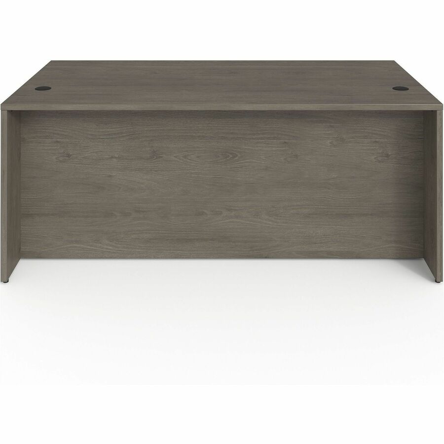 | Marketing Information | Left-pedestal desk is part of the elegant, Lorell Prominence 2.0 Series that is perfect for your executive office. Pair with single-pedestal desks, returns and bridges to create L-shaped and U-shaped configurations. Durable, Gray Elm laminate surface is mar-resistant, burn-resistant and impact-resistant to withstand daily work life. The 1" thick top with matching 3mm edgebanding is made with 45 lb. density particleboard and finished on both sides with high-performance, thermally fused melamine. The 72" wide desk features a full modesty panel for privacy, two grommets in the top, and a full pedestal with locking drawers to secure files and supplies. Pedestal includes two box drawers for supplies and one file drawer for letter-size or legal-size hanging files with included hangrails. Box and file drawers have 100 lb. full-suspension, ball-bearing slides. The 3/4" adjustable glides allow desk to remain level on uneven surfaces. Desk ships fully assembled so it's ready for immediate use. |