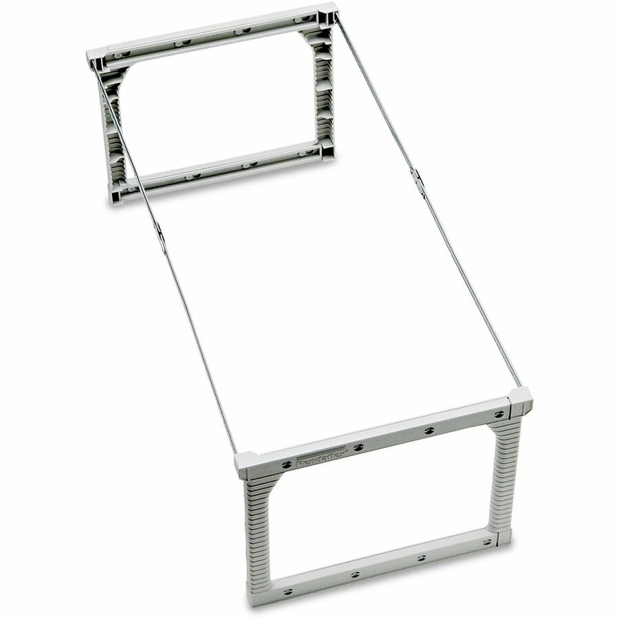 Unique design of hanging folder frame allows it to be assembled in seconds with no tools necessary. Folder frame adapts from letter-size to legal-size instantly. Easily transport it from drawer to drawer. Folder frame fits drawers 24" to 27" long and is made of high-tech, injection-molded plastic construction. Hanging folders are sold separately. |