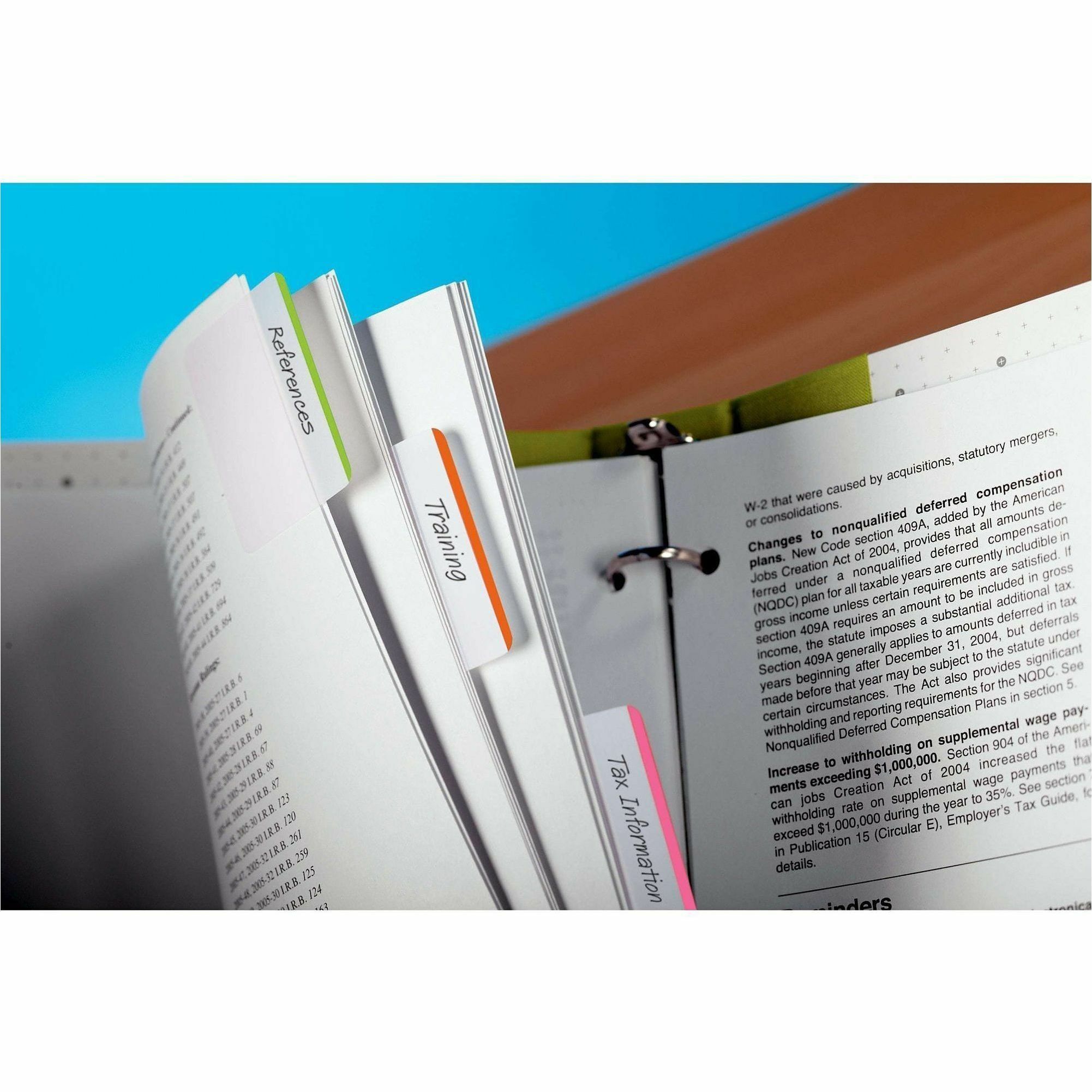 | Marketing Information | Post-it Durable Filing Tabs make it simple to quickly organize files, binders and planners. Use the flat tabs for marking interior or portable files. 2" repositionable tabs are tough and long-lasting. They stand up to repeated use. Easy to write on, apply and reposition, filing tabs offer plenty of space for labeling. |