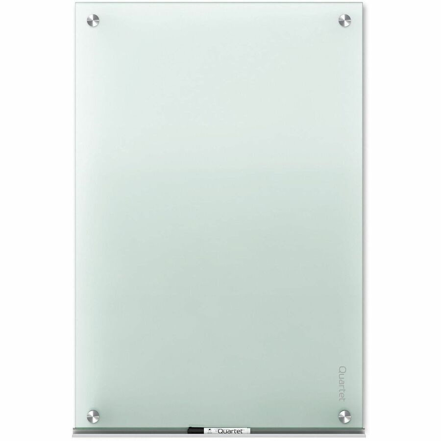 | Marketing Information | Ideal for heavy use in spaces with moderate traffic, this glass marker board provides long-term durability with a modern aesthetic appeal. Tempered glass surface will not stain, ghost, scratch or dent despite heavy use. Frosted glass board surface clearly displays any color dry-erase ink. Your dry-erase markers glide evenly over the board surface for smooth writing. Nonabsorbent glass is easy to keep clean with Quartet whiteboard cleaning supplies (sold separately). Frameless board is easy to install with included, pass-through mounting hardware. Hang vertically or horizontally. Board includes one dry-erase marker. |