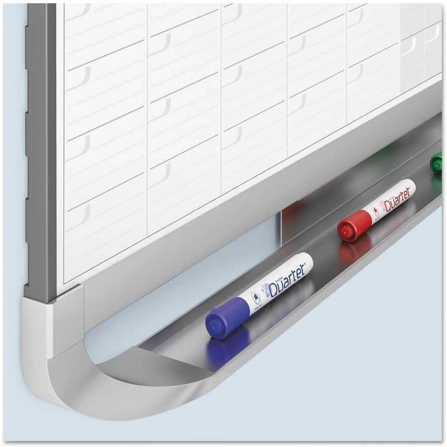 Total Erase® magnetic calendar board is 3' x 2' and features a durable surface that will not ghost or stain. Tracks 4 months at a time. Compatible with Quartet Prestige 2 Connects™ accessories. Mounting hardware and markers included. 20-year warranty. |