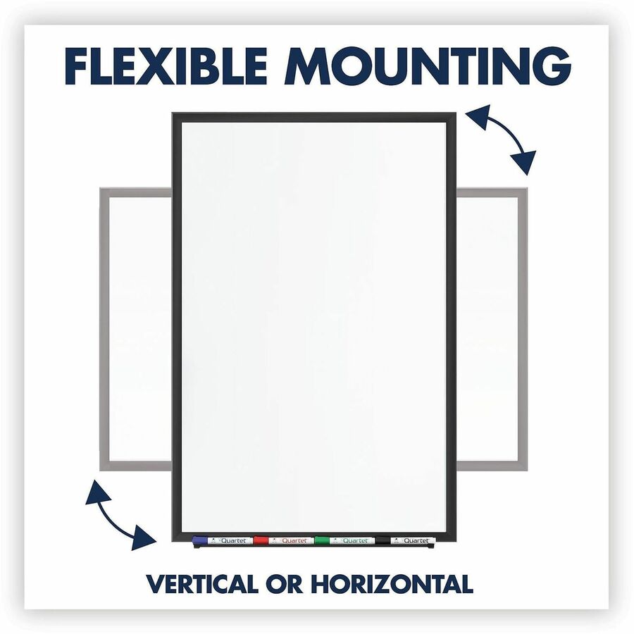 | Marketing Information | Standard whiteboard has a smooth, dry-erase writing surface. At 8' x 4' this dry-erase board is best for moderate use. Features a stylish, black aluminum frame and marker tray. Hardware is included for wall mounting. 3 year warranty. |