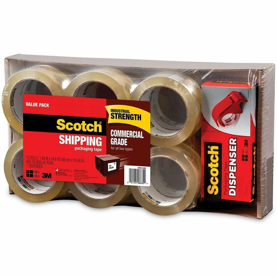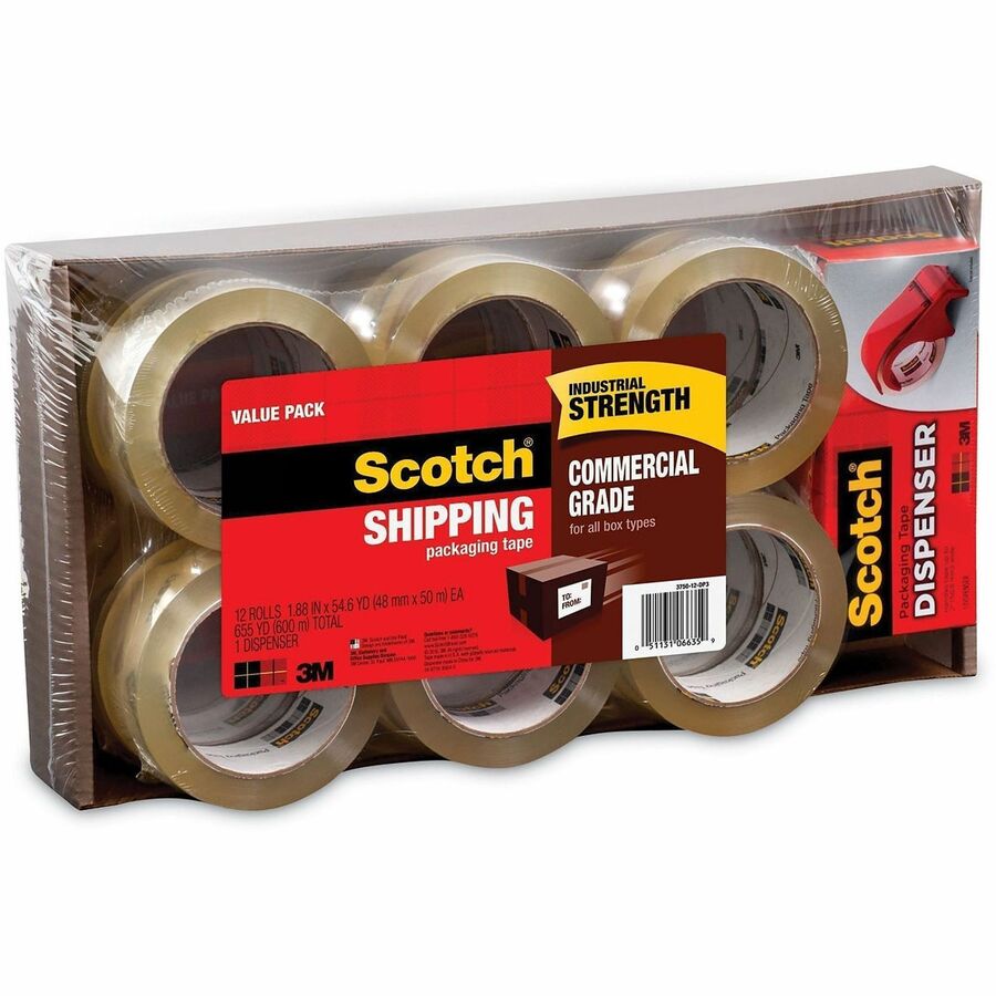 Time-proven construction of this commercial-grade packaging tape assures superior performance in a wide range of environments and applications. It is a great choice for your most critical packaging tape needs. This tape combines Scotch's strong hot-melt adhesive and backing to seal out moisture, dust and dirt. It resists splitting and assures reliable closures. Tape meets U.S. Postal Regulations for standard packages and includes the Scotch DP300-RD Hand Dispenser with braking device. |