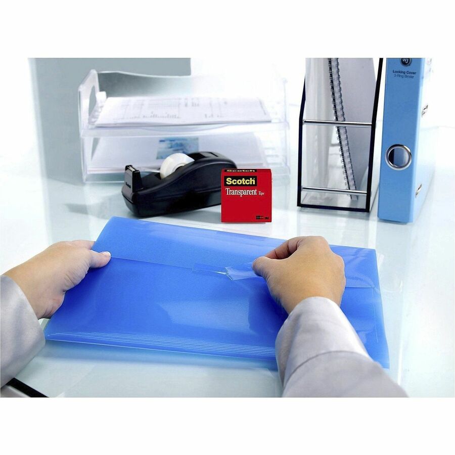 | Marketing Information | Scotch Transparent Office Tape is a glossy tape that is crystal-clear for a professional appearance. Instant adhesion delivers excellent holding power for your most critical taping tasks. Clear when applied, it doesn't yellow with aging. Tape pulls off the roll smoothly and cuts easily. It is ideal for multipurpose sealing, label protection, general-purpose wrapping and mending. Tape is also photo-safe (determined in accordance with ISO Standard 18916). |