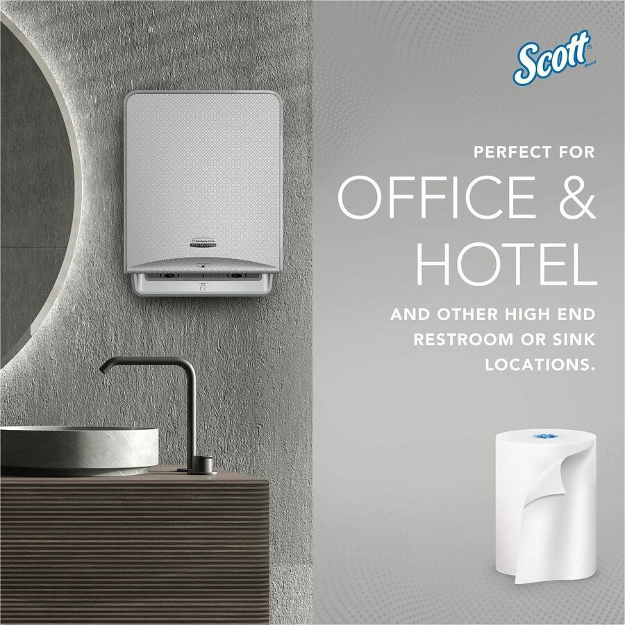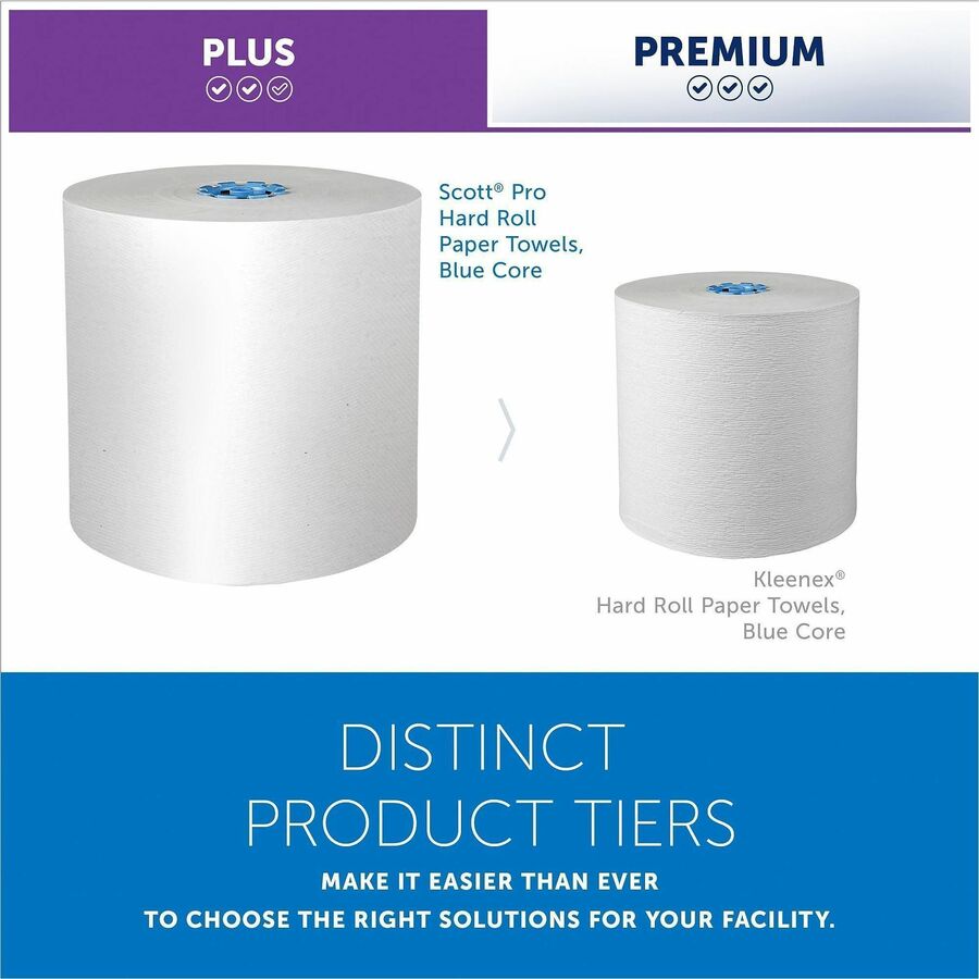 Scott® Pro™ provides state-of-the-art solutions to maximize productivity. Scott® Pro™ Hard Roll Paper Towels with fast-drying Absorbency Pockets™ provide efficient, reliable hand-drying for your washroom or break room. These paper towels are exclusively compatible with the Scott® Pro™ Dispenser systems, which can adapt to suit your needs. These dispensers have internal modules that can plug and play to give you the flexibility to build a dispenser customized to meet your requirements. Plus, the paper towels' Absorbency Pockets™ mean that users will need fewer towels to dry their hands. The result? More towels left in the dispenser, more times between refills and less paper waste. Drying is one of the most important steps in the hand washing process, and how you dry matters. Providing high-quality Scott® Pro™ Hard Roll commercial paper towels to your guests, clients and employees is one important piece of the workplace hygiene puzzle - 900'/Roll, 6 Scott® Pro™ Hard Roll Towel Rolls/Case; 5,400'/Case; with Absorbency Pockets™; for Blue Core Dispensers; White