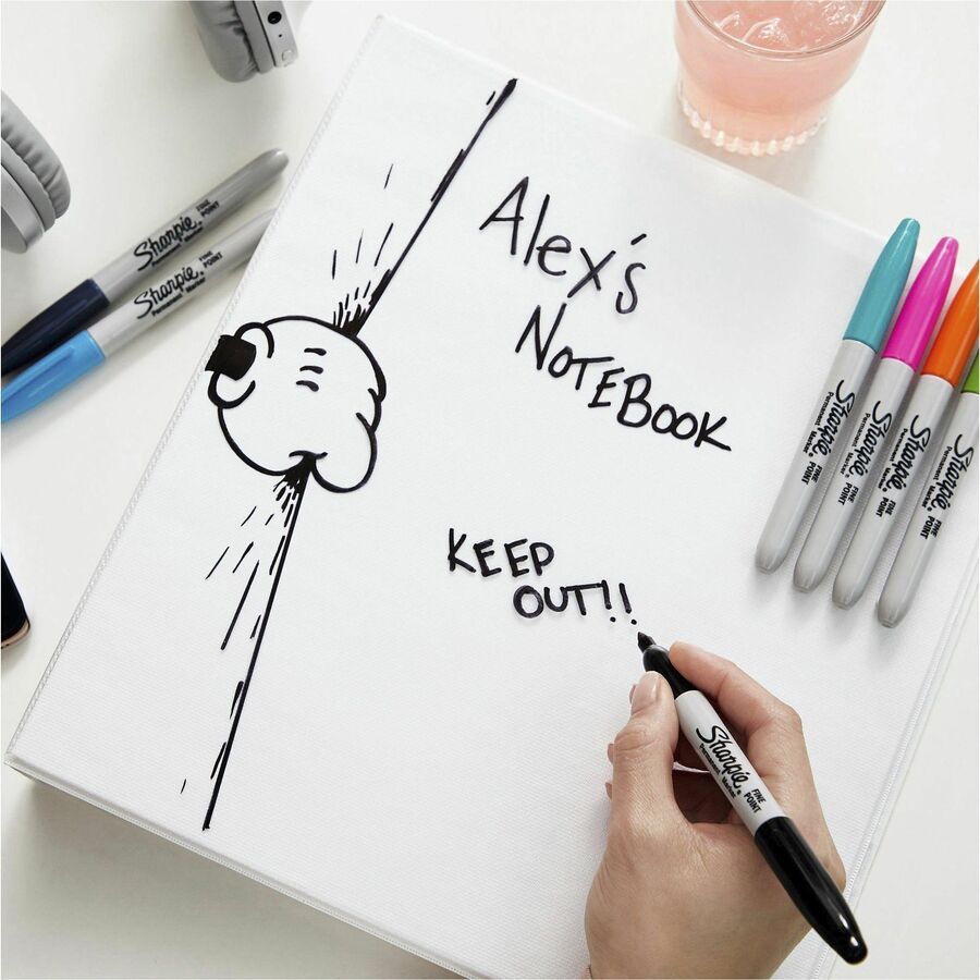 | Marketing Information | Original Sharpie pen-style permanent marker marks on most hard-to-mark surfaces. Markings are permanent on most surfaces. Durable fine-point tip produces thinner, detailed lines. Long-lasting ink resists fading, smearing and water. Alcohol-based ink is quick-drying and certified AP nontoxic. |