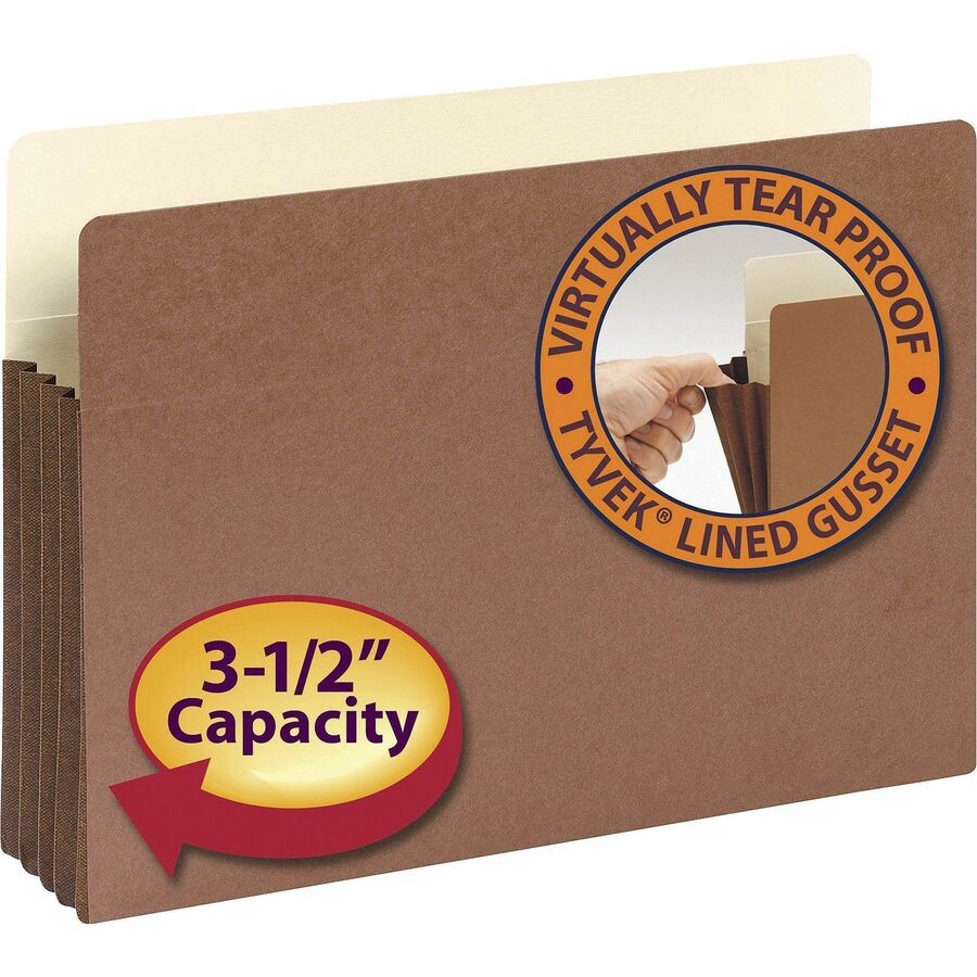 8 1/2" x 14" - 3 1/2" Expansion - Top Tab Location - 12.5 pt. - Redrope - Tear Resistant, Rounded Corner, Reinforced Gusset - 30% Recycled - 10 / Box