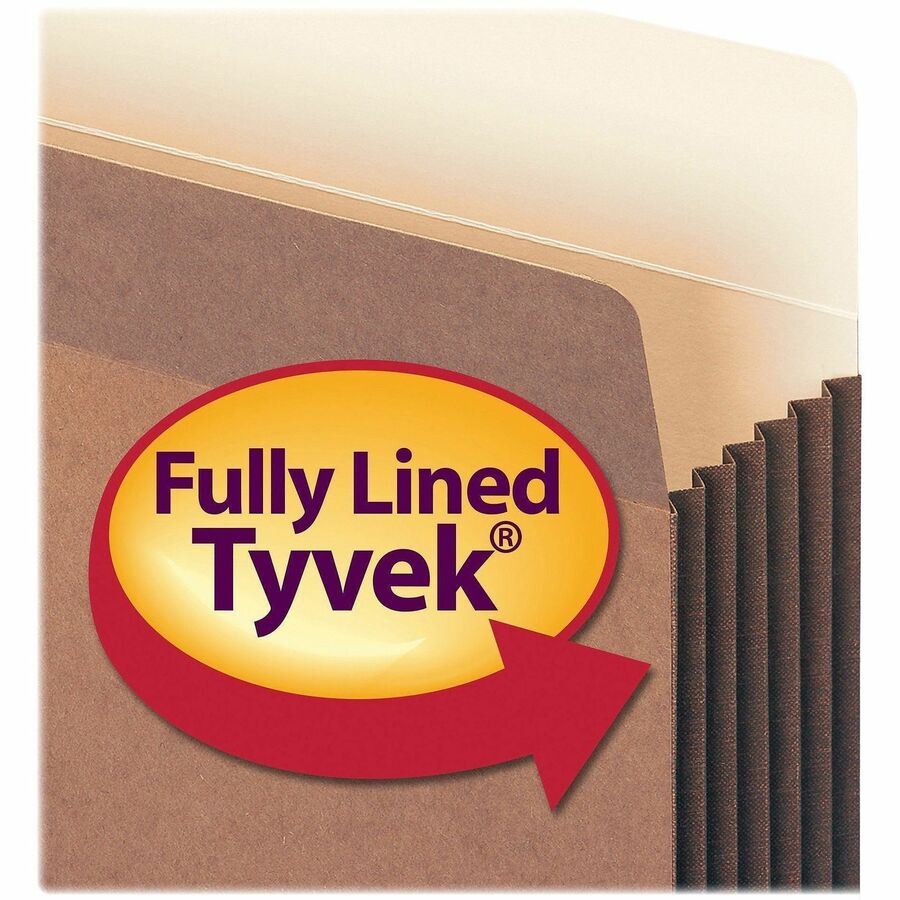 | Marketing Information | Active legal files, accounting or tax files, financial statements or other heavy materials need the extra strength. These sturdy file pockets with an accordion design are great for managing bulky records. Durable, tear-resistant material reinforcement at the top of the gussets makes the sides of these pockets virtually tearproof. Drop-front style allows easy access to bulky, frequently used legal-size files. Other features include 12-1/2 point redrope back with 11 point manila liner, rounded top corners, 6-1/2" high tear-resistant material gussets and double-thick, 9 point redrope front. |