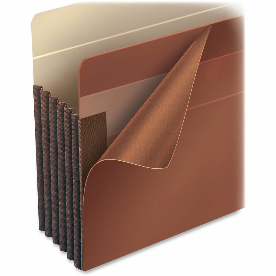| Marketing Information | Tuff Pockets are virtually indestructible yet they look like standard redrope files. They pass the toughest tests and last for years, even when loaded with large, heavy files, catalogs or notebooks. 6-1/2" high sides and bottoms are fully lined with tear-resistant material. Special rollover reinforcement at the top extends into the front and back panels twice as far as standard file pockets. Heavyweight, 7/8" front and back panels provide rigid support and have a hidden reinforcement strip at the point of greatest stress. Extra-wide, legal-size pockets accommodate standard-size, top-tab file folders and expand 3-1/2". |