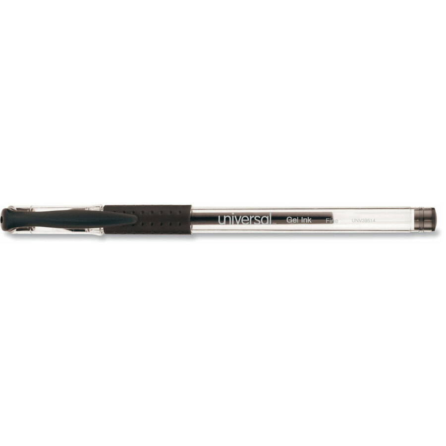 Universal Comfort Grip Gel Pen, Stick, Fine 0.5 mm, Black Ink, Clear/Black Barrel, Dozen