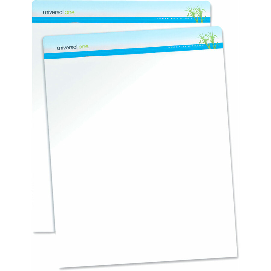Made from renewable resource, sugarcane, which grows faster and reaches maturity much earlier than trees. The renewable resource is an excellent alternative choice for high-quality paper at a reasonable price. Constructed with perforated pages that ensure easy tear-out. Supported by a stiff, recycled cardboard back that keeps the pages rigid and straight, even when not on an easel. The holes on the header tape are designed to fit standard easel pegs. |