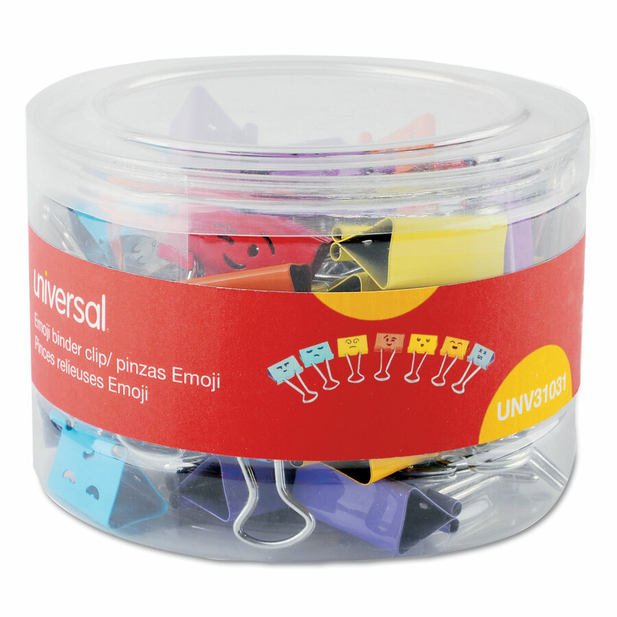 Universal Emoji Themed Binder Clips with Storage Tub, Medium, Assorted Colors, 42/Pack