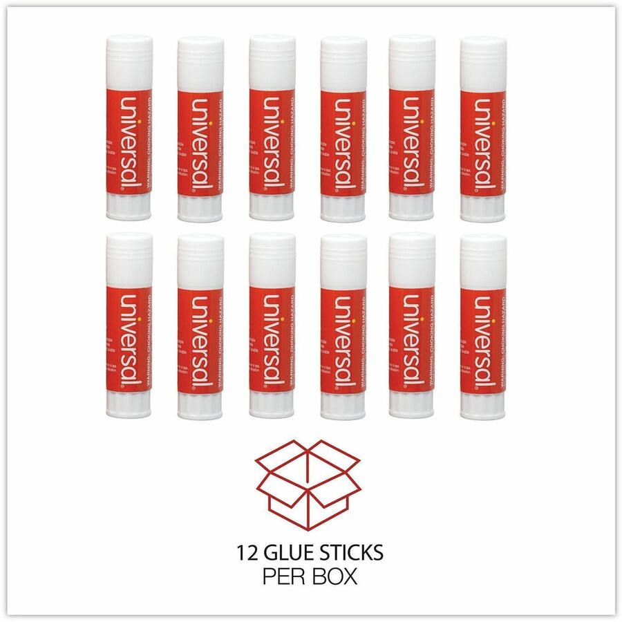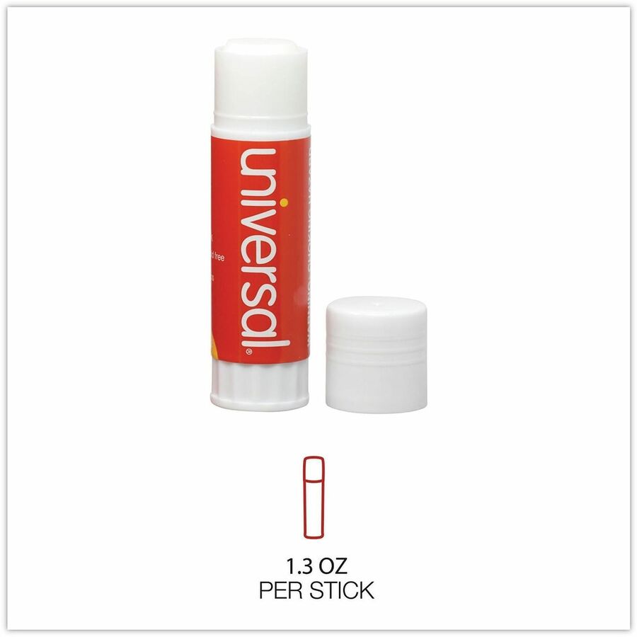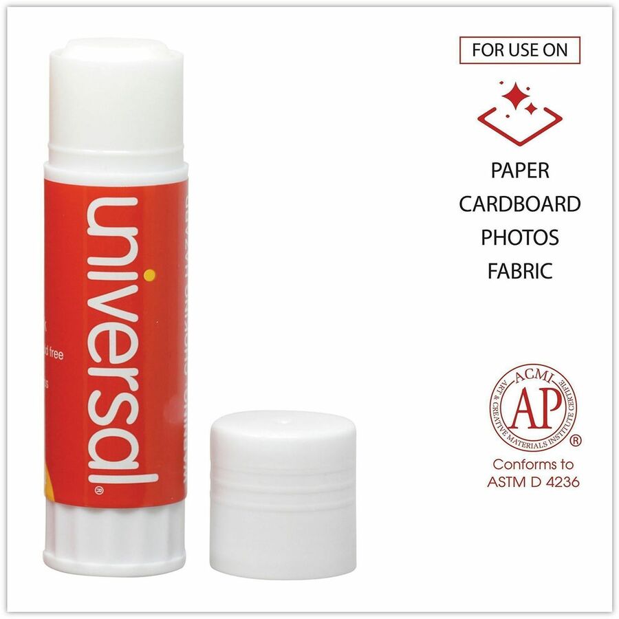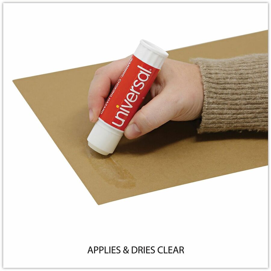Universal® Glue Stick is a washable and acid-free glue that comes in a convenient and easy-to-use stick. Great for use on paper, cardboard, photos, and fabric. The solid glue dries clear and wrinkle-free, making it ideal for archival materials. Great for use in schools, day cares, and craft projects. Less mess than liquid glue and washes easily off hands and clothes. |