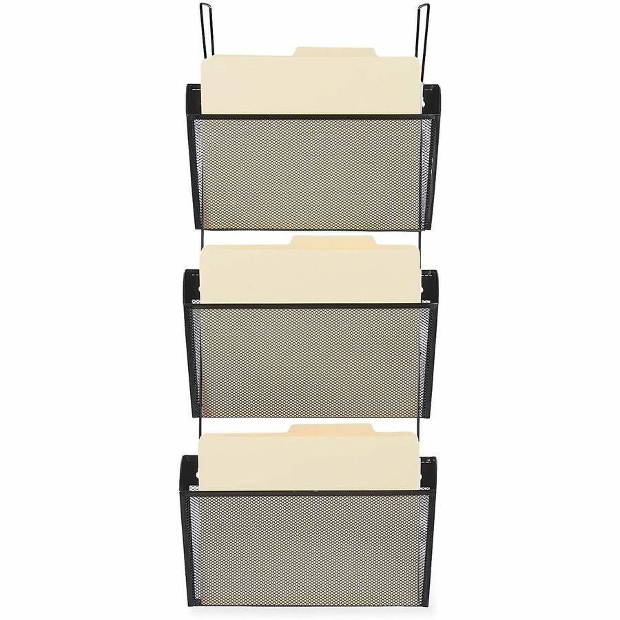 3 Pocket(s) - 8.50" Height x 14.13" Width x 3.38" Depth - Black - Wire Mesh - 3 Set