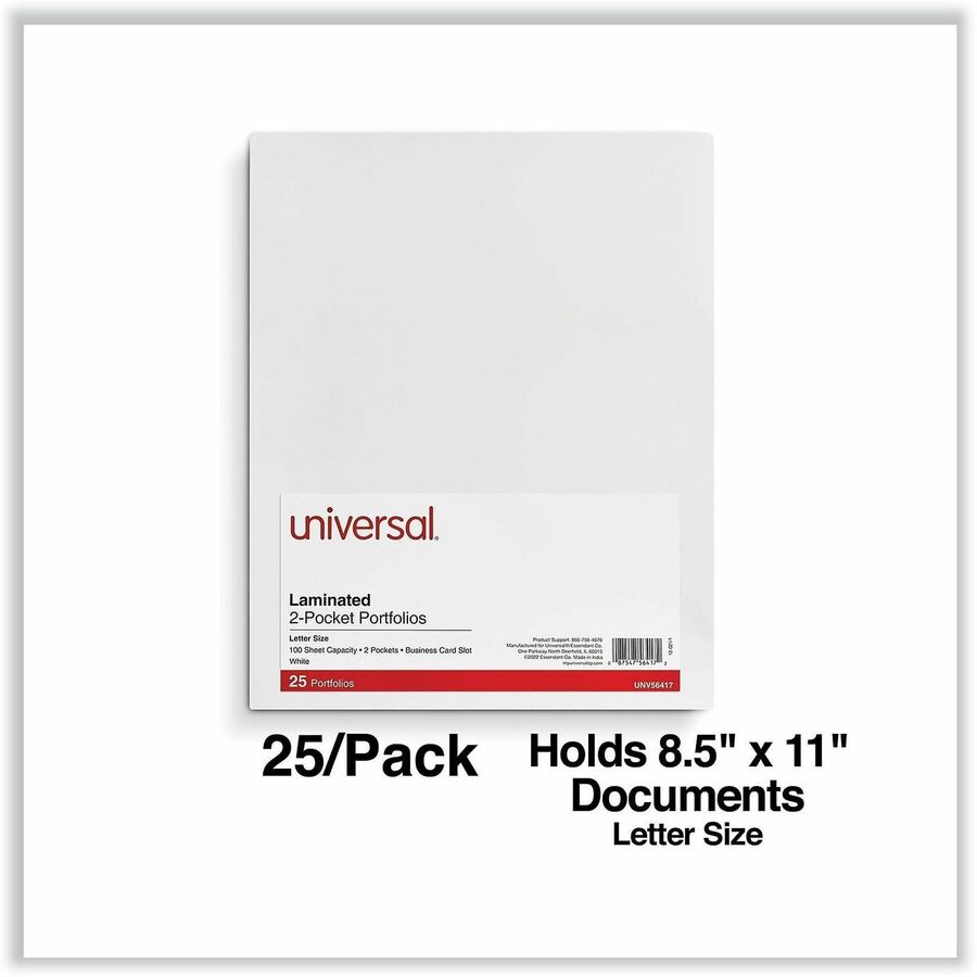 11" x 8 1/2" - 100 Sheets Capacity - Inside Front & Back Pocket(s) - Laminated - 25 Box