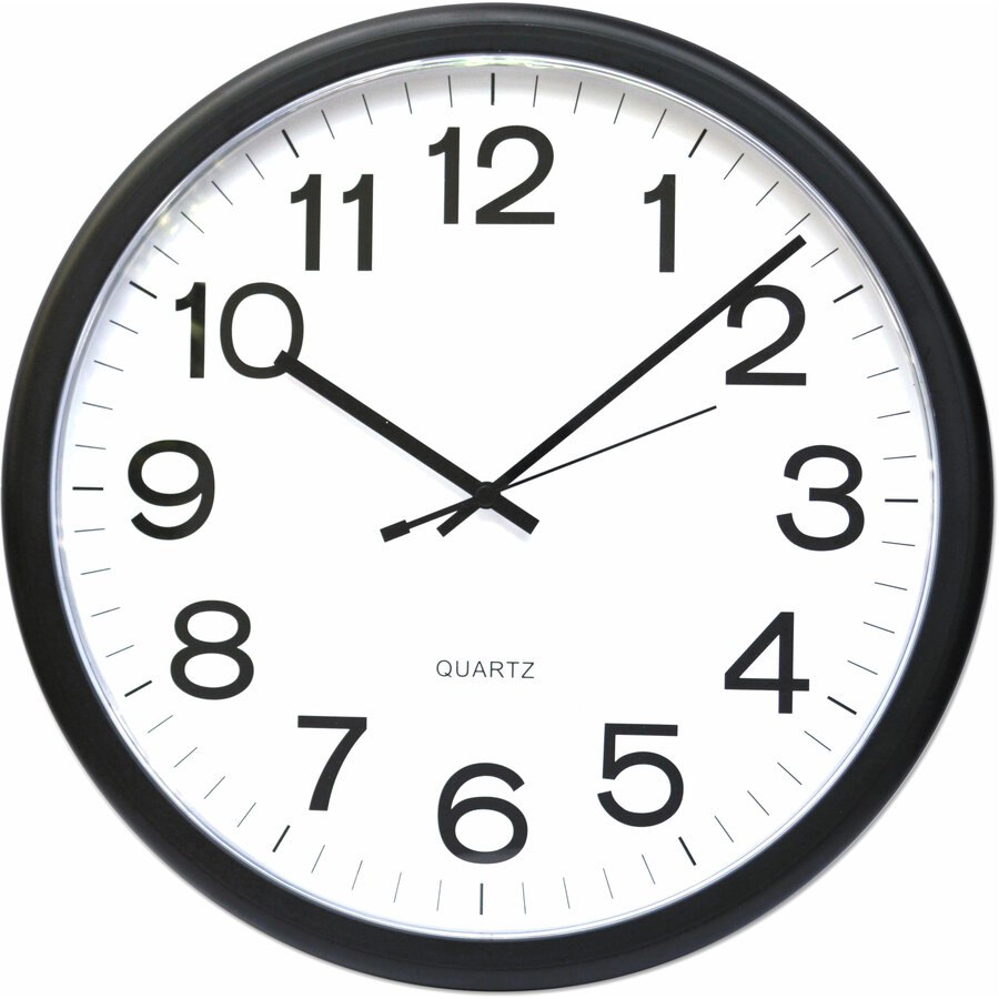 | Marketing Information | Large face makes this classic, round clock easy to read from a distance. The clean text style provides an elegant simplicity. Features hour, minute, and second hands for precise reading. Designed to get the most out of every battery. Quartz movement helps ensure accuracy. Crystal clear, plastic face is extremely durable and shatter resistant. Uses 1 AA battery (sold separately). |