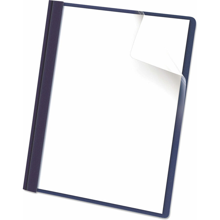 These report covers feature clear front panels that can display title sheets or cover pages clearly. Three metal prongs secure up to 100 punched letter-size pages inside. Product is made with a leatherette embossed paper back cover. |